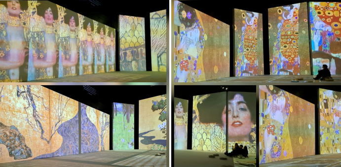 | 京都からちょこっと寄り道。大阪に行ってきました。 ウィ−ン出身の象徴主義画家、グスタフ・クリムトは、女性像を中心にした絵画やスケッチで大人気。 この展示館はクリムトの絵画を見るのではなく、没入型展覧会 |