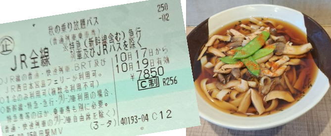 | 6:48発 自宅最寄り駅 9:35着 名古屋駅 住吉屋 旬のきのこきしめん 580円 | ||