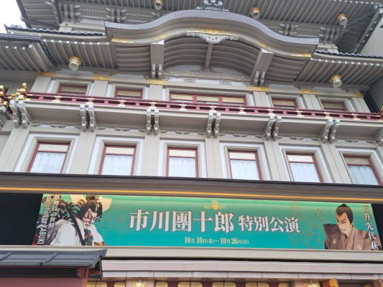| 食後の運動がてら、地下鉄に乗らずに歩いて御園座に向かうことにしました。 推し活その1は尾上菊五郎。尾上菊之助改め 八代目尾上菊五郎襲名披露公演の昼の部を観覧。 艶やかな衣装で凛とした立ち姿、親子の所作もぴったりで、優雅な時間を過ごせました。 |
