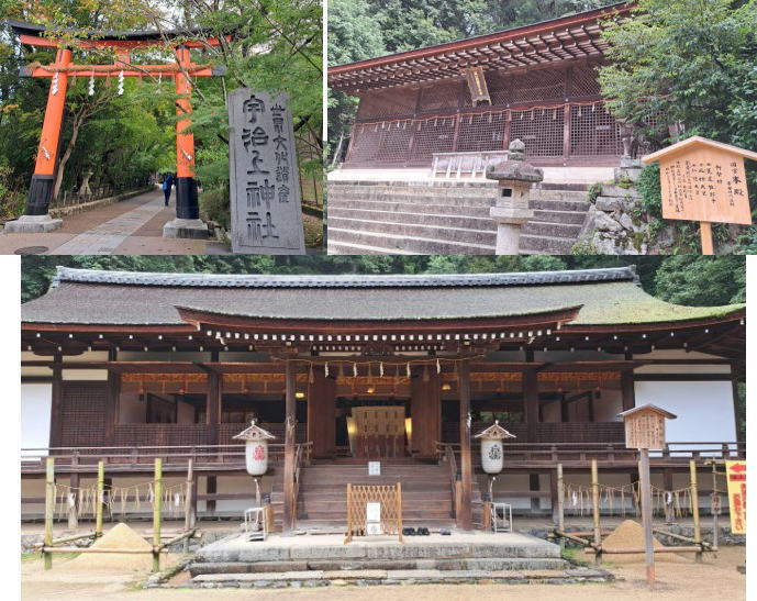 | 三室戸寺を出て、かげろうの道を歩き、宇治十帖・蜻蛉の古跡を通り過ぎると源氏物語 ミュ−ジアムです。昨年の「光る君」の放映時には賑わっていたことでしょう。 そこからさわらびの道を進むと宇治上神社があります。 |