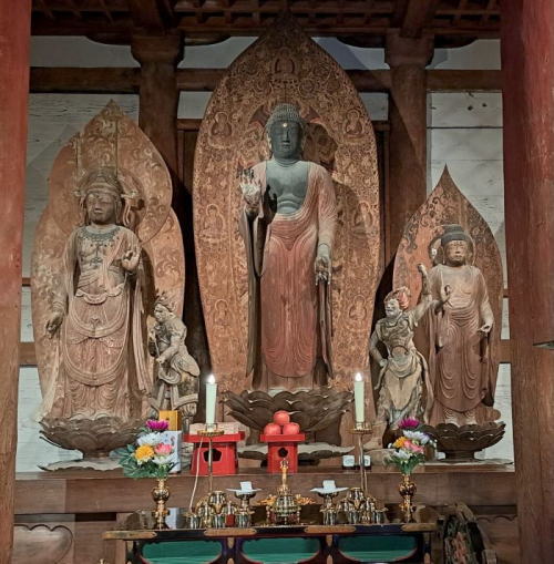 | 中尊 釈迦如来立像(国宝) 平安時代前期 薬師如来立像(重文) 文殊菩薩立像(重文) 平安時代 |