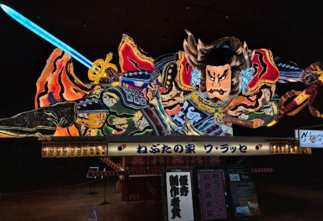 | 織田信長をねぶたで表現。近くで見ると繊細な色使いです。 |