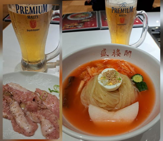 | バスで新青森駅まで行き、新幹線に乗って盛岡に移動。繁華街とは反対側のBHに宿をとりましたが、 一直線で移動できたので盛楼閣にも楽々行けました。 行列覚悟 いつものトントロで生ビ−ル一杯+盛岡冷麺でもう一杯・・・。 もぉ〜〜 し・あ・わ・せ・♪ |