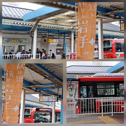 | 8:11発 盛岡〜(はやぶさ)〜8:57着くりこま高原9:25発〜(紅葉号)〜10:40着いわかがみ平 | ||