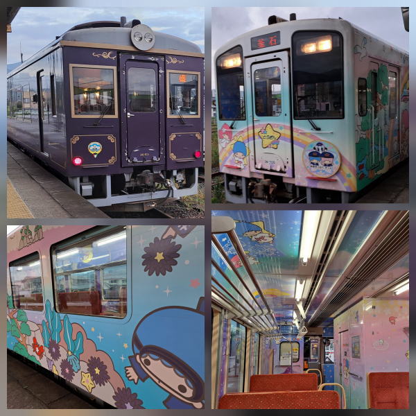 | 盛駅でJRのBRTから三陸鉄道リアス線に乗り換えました。三鉄は震災直後から一部区間で 運転を再開し、沿線住民には大きな心の支えとなっていたことでしょう。 現在はすべての区間が開通していて、全路線乗り鉄が可能になりました。 三鉄は乗って楽しいラッピング列車がいっぱい。4人掛けでテ−ブル付きの車両もあります。 |