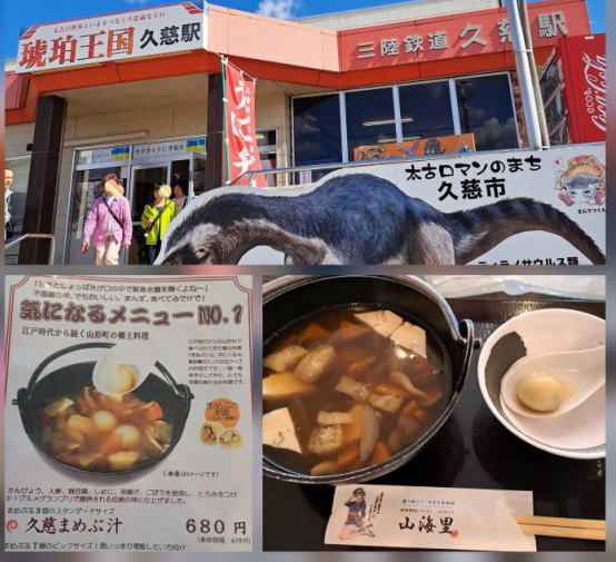 | 11:06着 久慈 「道の駅くじやませ館」 でまめぶ汁680円 | ||