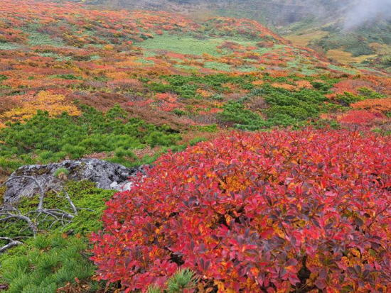 | おときゅう4日目、おときゅうパスは今日が最終日です。紅葉の山、2座目は栗駒山。 神が降臨しました。本気出した栗駒山の神の絨毯 |