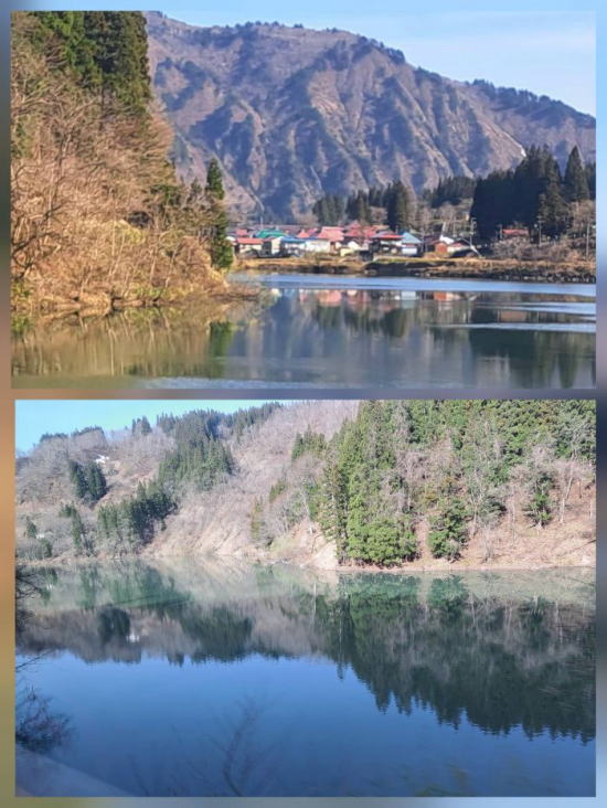 | 只見線会津川口駅の絶景スポットのひとつ、大志集落・・・美しい〜(^。^)y-.。o○ 静かな水面ですね〜♪♪♪ 水鏡・・・美しい〜(^。^)y-.。o○ |