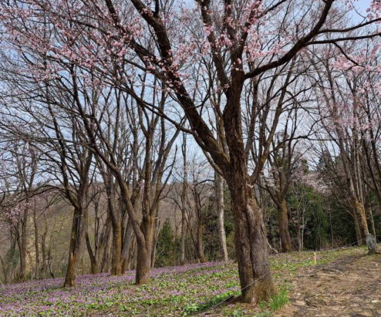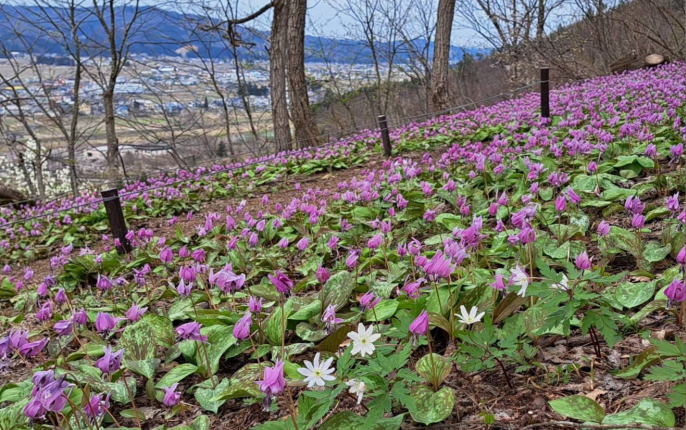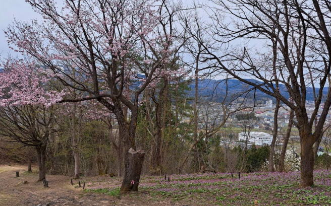 | 六日町駅から歩いて20分ほどで、薬師堂。ここから登ります。桜は咲き始め、カタクリは満開 |