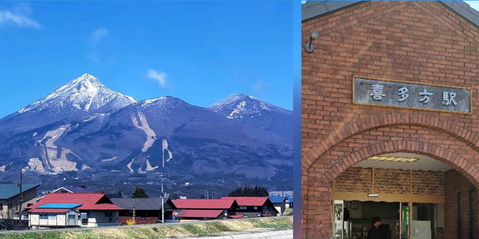 | 三春からは磐越東線〜磐越西線と順調に乗り換え、 車窓からは会津磐梯山を見ながら喜多方駅に到着しました。 |