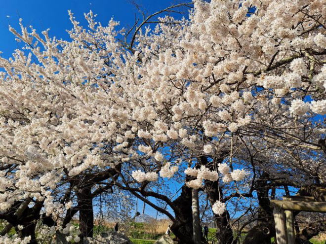 | と、またまたその前に飯盛山の近くに石部桜(八重の桜)が満開だというので行かなきゃ |